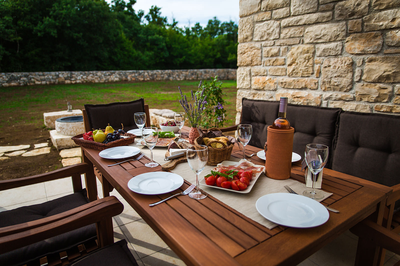 Feel free to pick rosemary, sage, dill, parsley, oregano, thyme, lemon balm, and other spices from the aromatic garden on the property and simply add them to your dishes. The food prepared on the stone grill pit will have e special freshness and unique flavor. Open the bottle of wine and enjoy the Mediterranean lifestyle.